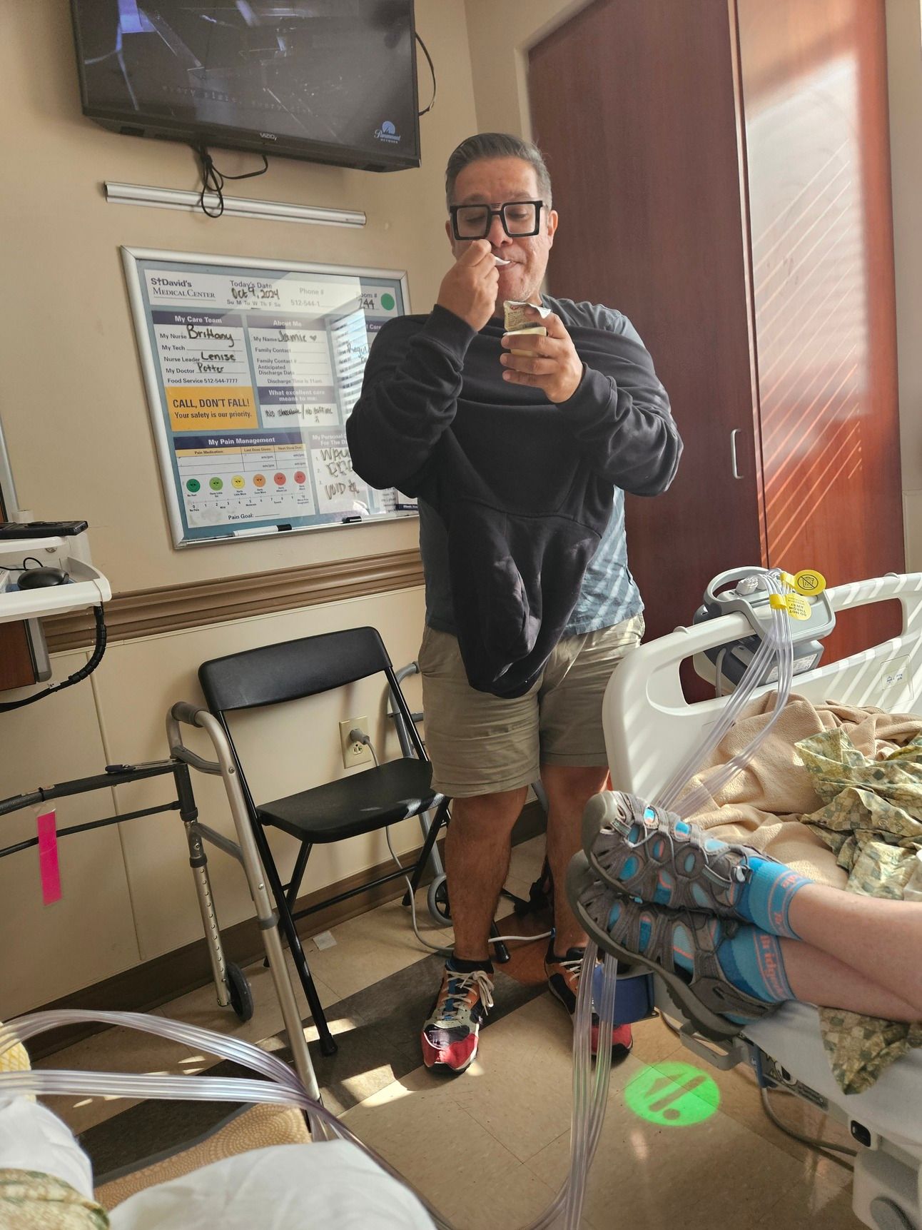 First night. The first night was tough. I told my family I would be okay by myself due to the level of care I was getting. No matter the level of care I was receiving, the care could not take away the pain. I remember being in pain that night, feeling alone. Even questioning myself “why did I tell them to leave?” (If I were to do it all over again, I would still tell them go home because that room was not set up for an overnight guess and with my nurses checking in on me every hour on the hour, there was no legit sleep). Then I felt all the love, the prayers, and energy everyone was sending me that night. No joke, I looked over in my room, and I thought my room was full of people. The energy was so strong and I knew at that time I was not alone. So thank you all for being with me that night!